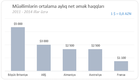Aşağı sıralarda yer almasına baxmayaraq, ən çox əhəmiyyət kəsb edən nyuanslardan biridir. Diaqramın müəllimlərin əmək haqqları haqda olduğunu bilirik, lakin, hansı dövrü əhatə etdiyi, ortalama aylıq və ya illik, net və ya gross olduğu haqda heç bir məlumat yoxdur. O səbəbdən də, heç bir məna ifadə etmir. - Dəyərlərin sıralanması