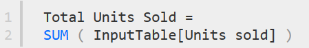 CALCULATE funksiyası ilə, measure seçilir, bizim misalımızda bu, Total Units Sold-dur. Və arxasından da bu measure hansı kriteriyalar ilə filterlənəcək, onu müəyyənləşdiririk.