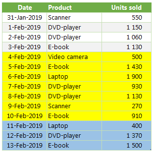 Orijinal cədvəlimizdəki məlumatlarla (sarı rəng – keçən həftə, göy rəng – bu həftə) müqayisə etsək, formulların düzgün işlədiyindən əmin ola bilərik: