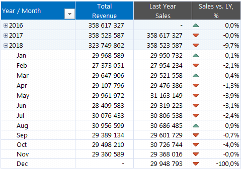 - Sales vs. LY, % – Sales versus Last Year in percentage – yeni measure-ımızın adı.