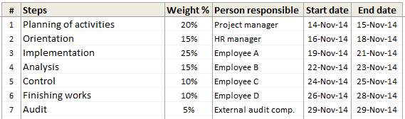 - Addımların hər birinin başlanğıc (Start date) və bitiş (End date) tarixləri müəyyən edilməlidir.