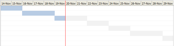 Boydan boya uzanan qırmızı xətt isə, faylı açdığınız günün tarixi olan sütunda olacaqdır. Yəni vizual olaraq gün etibarilə layihənin hansı mərhələsində olduğunu görəcəksiniz.