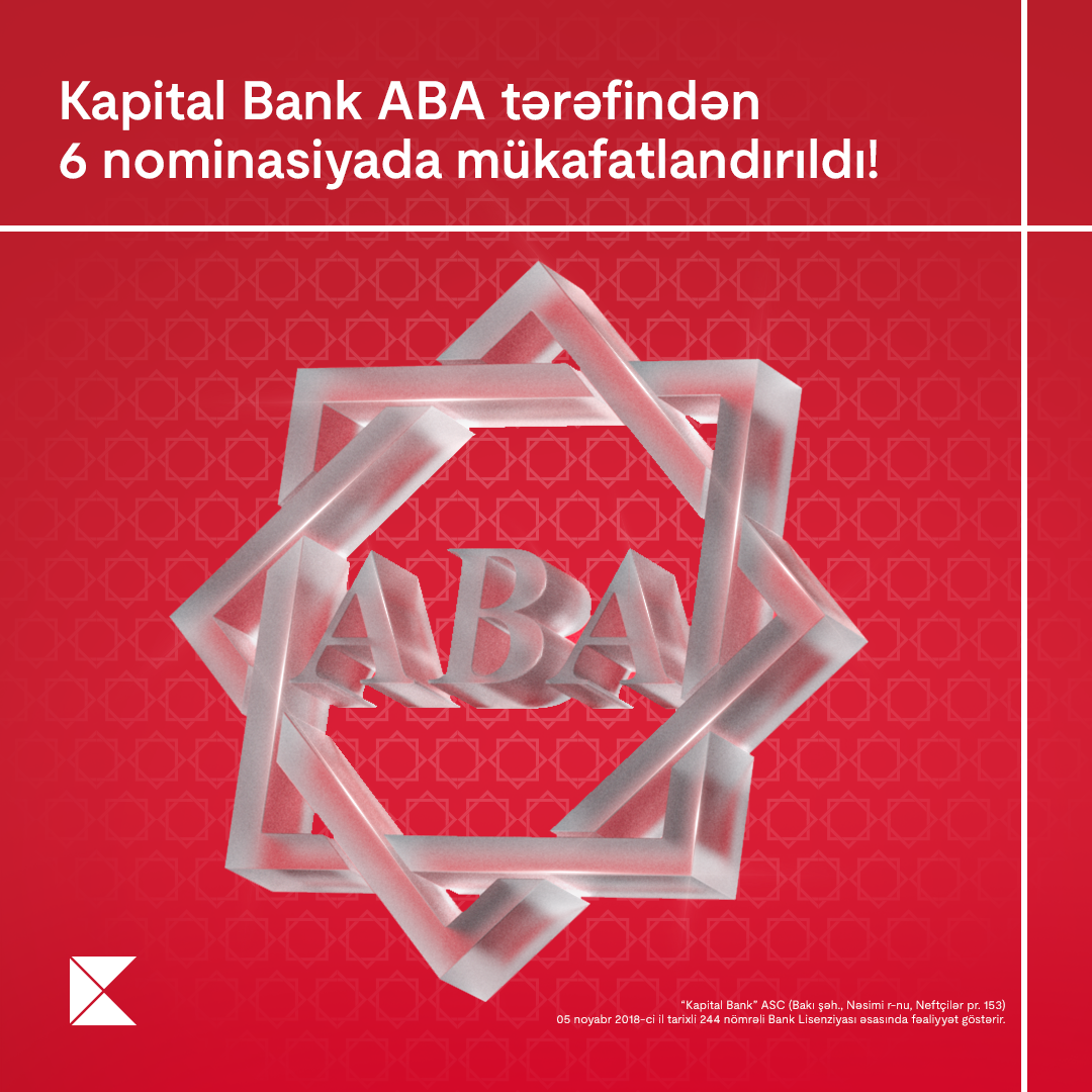 Azərbaycan Banklar Assosiasiyasının (ABA) təşkilatçılığı ilə ənənəvi “Bankçılıq Mükafatları – 2024” ün qalibləri müəyyən olunub və Kapital Bank 6 nominasiyada mükafat qazanıb.