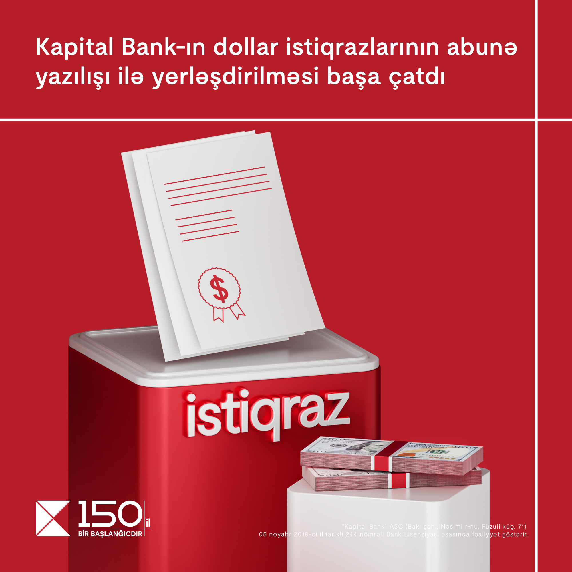 Xəbər verdiyimiz kimi 30 sentyabr 2024-cü il tarixində Bakı Fond Birjasının (BFB) Listinq Komitəsinin qərarı ilə Kapital Bank ASC-nin buraxılış həcmi 20 milyon ABŞ dolları olan istiqrazları premium bazar seqmentində listinqə daxil edilib. Bu istiqrazların abunə yazılışı üsulu ilə yerləşdirilməsi 31 oktyabr 2024-cü il tarixində uğurla yekunlaşıb. Yerləşdirmə olduqca böyük maraqla qarşılanıb.