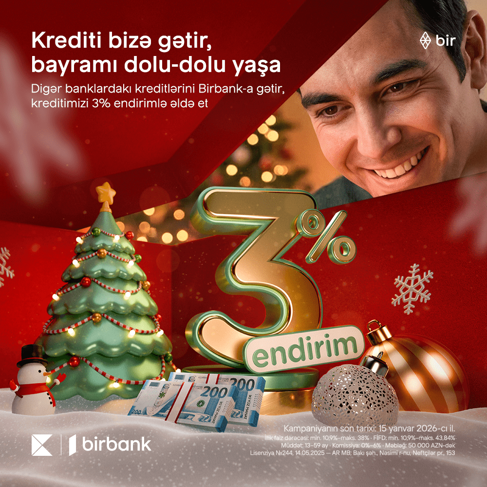Kreditini Birbank-a gətirənlər 3% endirim qazanır- Kampaniya davam edir