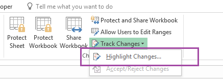 Bu problemi aradan qaldırmaq üçün isə, Excel – də Track changes adlı imkan var. Bunun üçün Review >> Changes >> Track changes ünvanına getmək lazımdır.