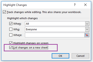 Bu dəfə isə List changes on a new sheet qutucuğunu seçərək OK klikləyirik.