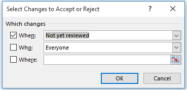 Review >> Changes >> Accept / Reject Changes ünvanına gedərək müvafiq dialoq qutusunu açırıq.