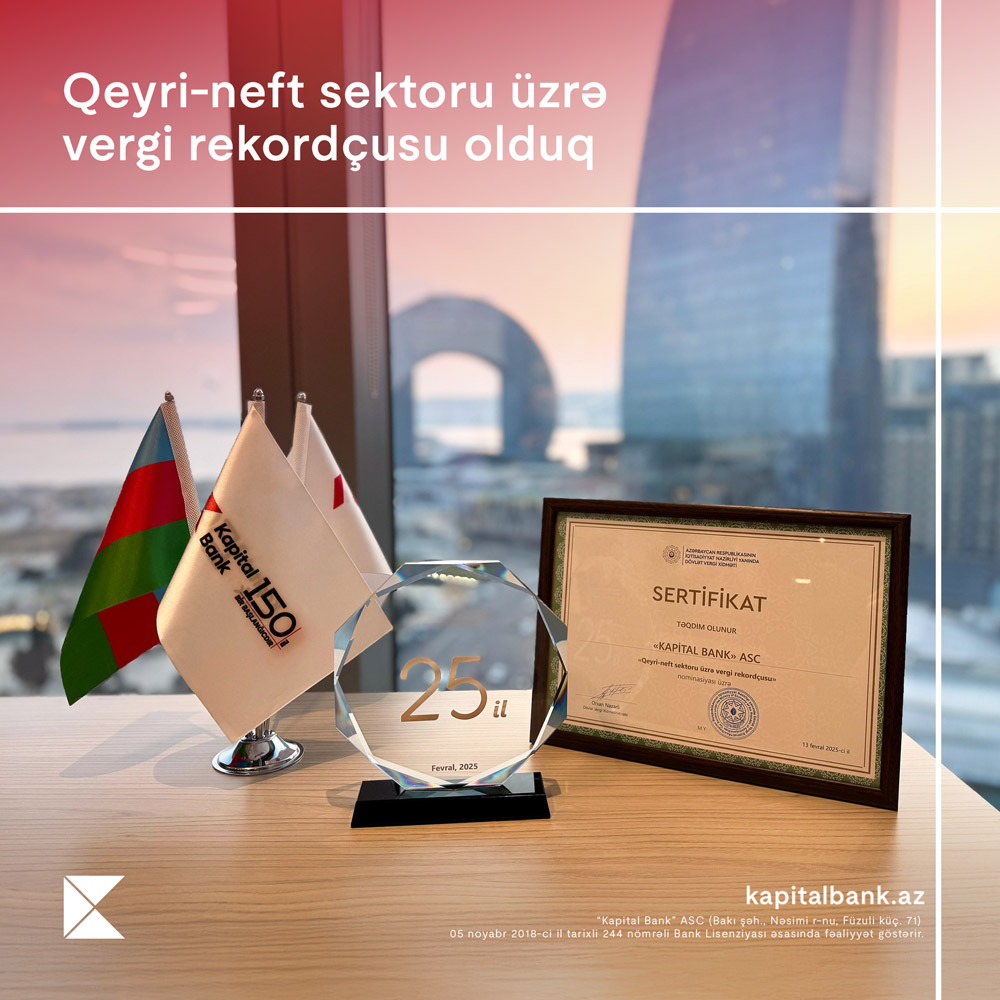 Ölkənin aparıcı maliyyə institutlarından biri olan Kapital Bank uzun illərdir qeyri-neft sektorunun inkişafına dəstək verir və sahibkarların maliyyə resurslarına çıxışını asanlaşdıran layihələr həyata keçirir. Bankın vergi öhdəliklərinin icrasında fəallığı və iqtisadi şəffaflığın gücləndirilməsinə verdiyi töhfə bu sertifikatla qiymətləndirilib.